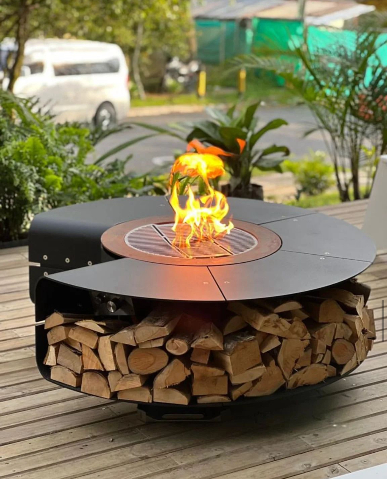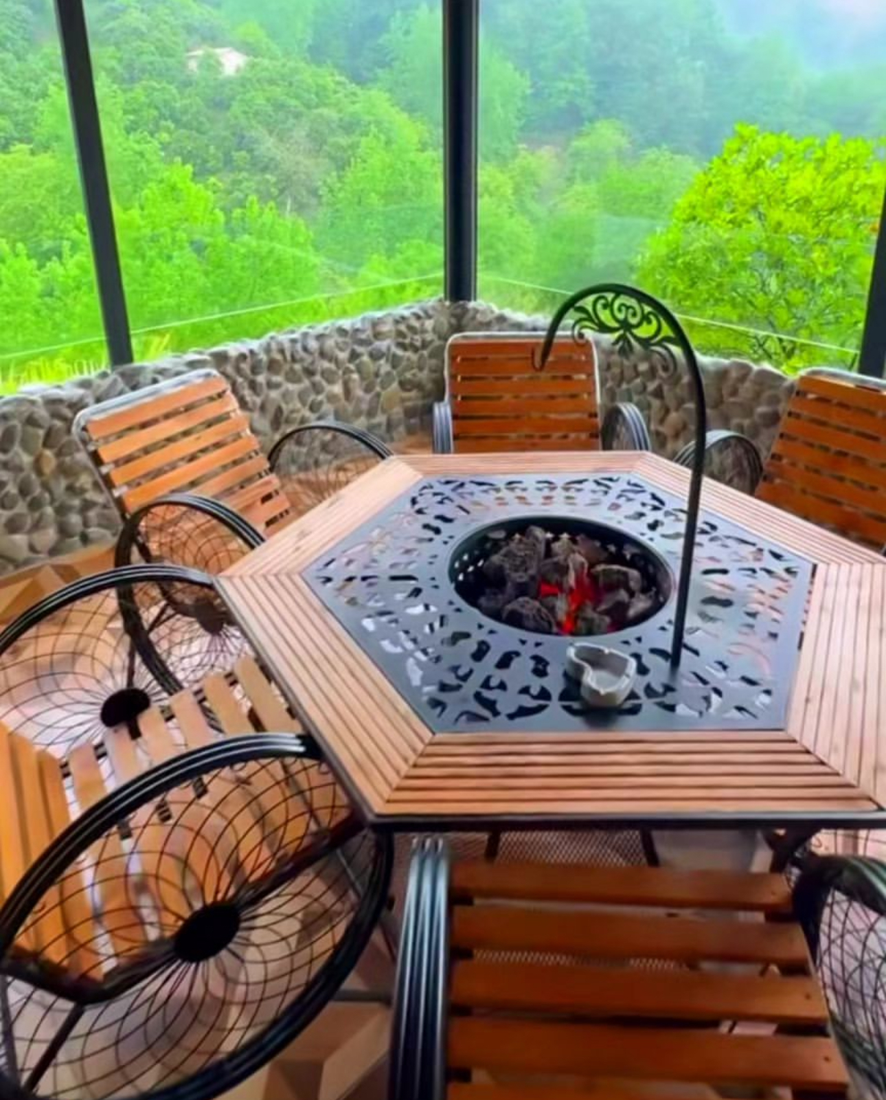 میز آتشدان یکی از کاربردی ترین و جذاب ترین میز های مجموعه یگان باغ است و کاربردهای زیادی داره،این میز دارای محفظه در وسط میباشد که با قرار دادن هیزم در وسط محفظه یا مدل گازی شما رو به پخت و پز در یک دورهمی دوستانه و همکاری بین افراد دعوت میکنه و در سرمای زمستان این میز فوق العاده گرمابخش محفل شما میشود و این میز برای ویلا،باغ،روف گاردن،بالکن و تراس،کافی شاپ ها و رستوران های دارای فضای باز گزینه خیلی جذابی است.
